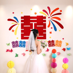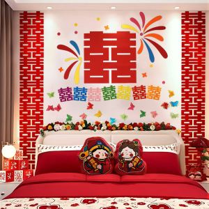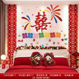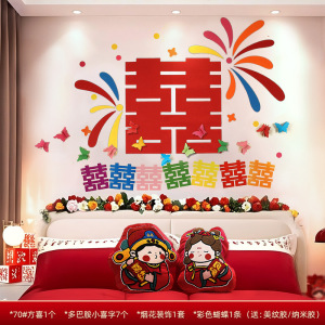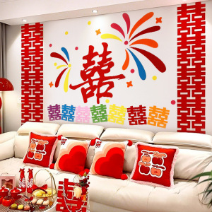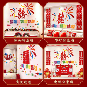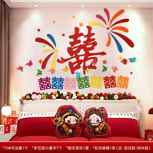 客厅沙发背景墙结婚喜字装饰男女方新婚房多巴胺氛围感布置全套装