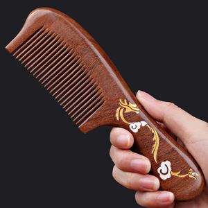 精品黑金檀木梳子女士高端木头小儿童密齿防顺发静电脱发定制LOGO