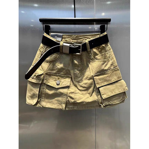 美式复古高腰防走光夏季新款半身裙口袋显瘦工装辣妹牛仔包臀裙女