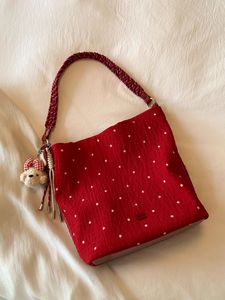 2025新款红色波点包褶皱肌理休闲包女单肩大容量设计感水桶包工厂
