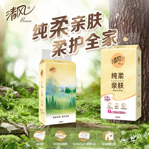 【天天特卖】清风抽纸悬挂式4层250抽整提纸巾挂抽餐巾纸抽厕纸巾