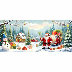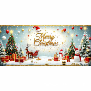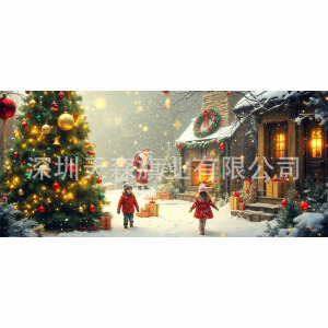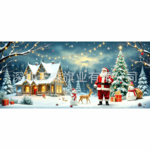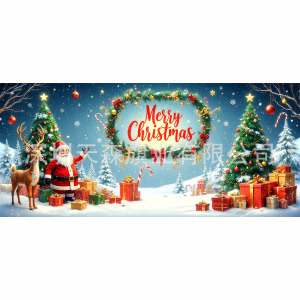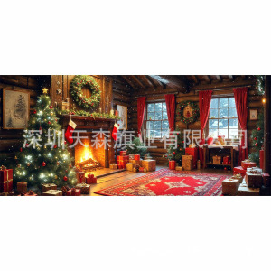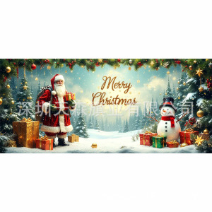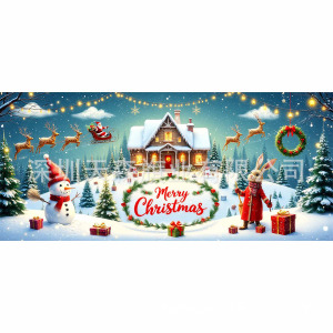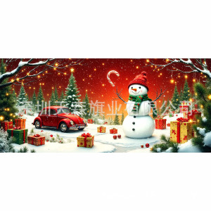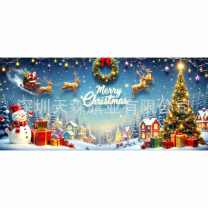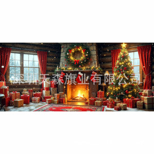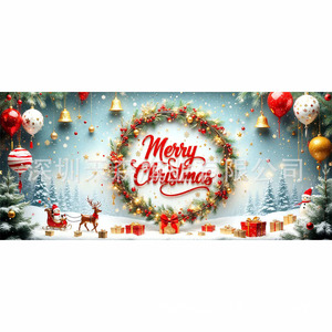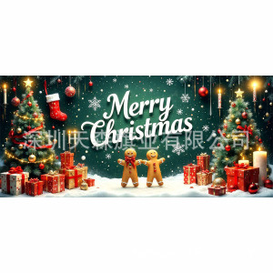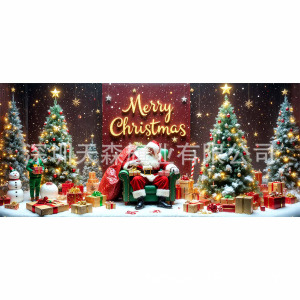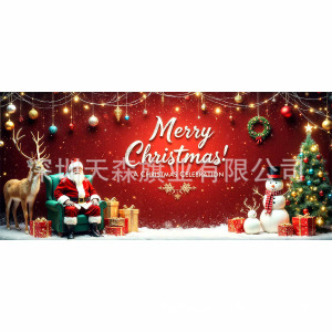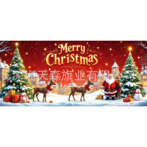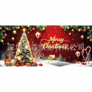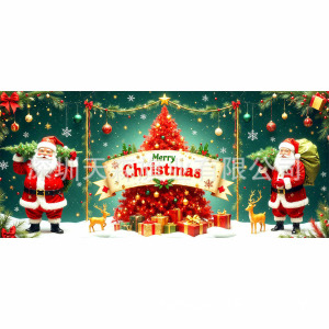 跨境新款圣诞节车库旗宽幅大尺寸节日庆祝活动真实感装饰背景温馨