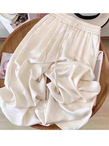 哥家商场同款女装2025夏季新中式醋酸缎面阔腿裤薄款国风高腰裤子