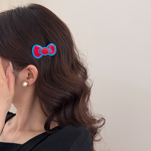 韩国樱桃红蝴蝶结发夹少女心双马尾刘海侧边夹百搭卡通发饰发夹女