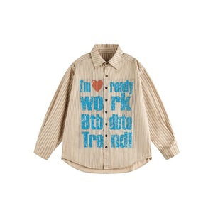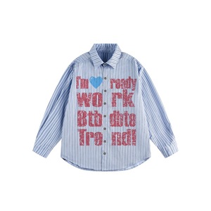 BTBDBTE学院风潮牌字母印花衬衫男女宽松长袖潮牌条纹衬衣CS2524