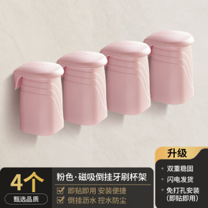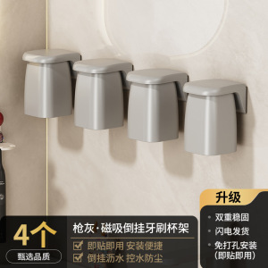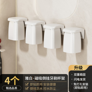 洗手间牙刷杯置物架浴室壁挂洗漱杯收纳架卫生间免打孔磁吸漱口杯