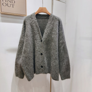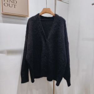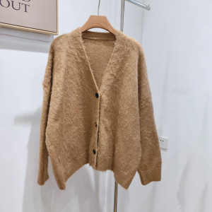 奶呼呼软糯宽松外搭开衫毛衣羊卷毛单排扣外穿秋冬女上衣针织外套