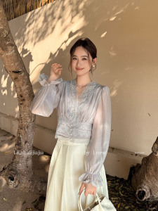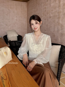 LS 法式浪漫甜美泡泡袖小衫 广州十三行2025早秋新品女装61103#