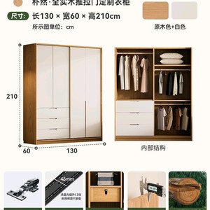 朴然衣柜【长1.9m*2.0m高】三门-全实木