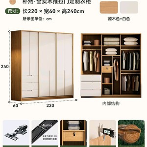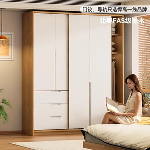 FAS橡木推拉门衣柜卧室家用全实木板原木纯北欧成品两门高端柜子