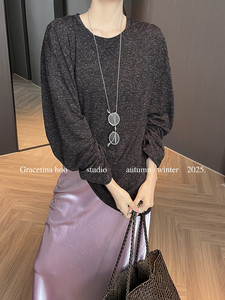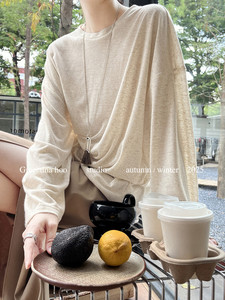 GRACETINAHOO法式亚麻混点松弛感简约慵懒通勤百搭长袖T恤 TB594
