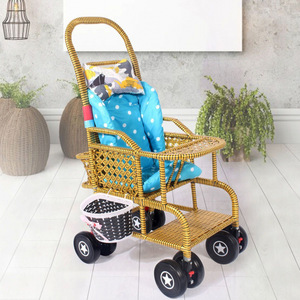 藤编推车夏季婴儿藤椅小推车仿轻便竹藤宝宝可坐躺藤条安全舒适