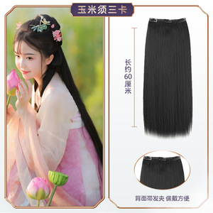 汉服古风假发片仿真发玉米须发排一片式长直发接发片古装cos造型