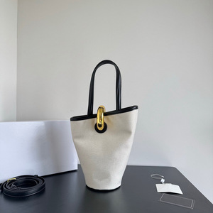 Jac2025新款手环水桶包Bags Beige手提包单肩斜挎草编金扣菜篮子