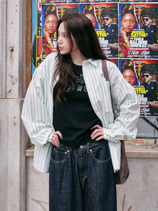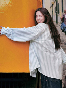 【现】SPE*LL2025秋季新品宽松条纹衬衫时尚薄款长袖休闲上衣女