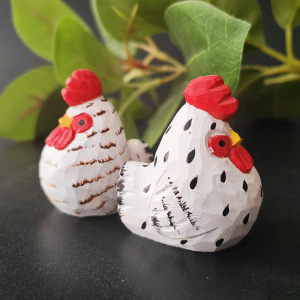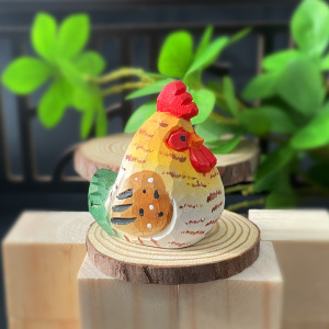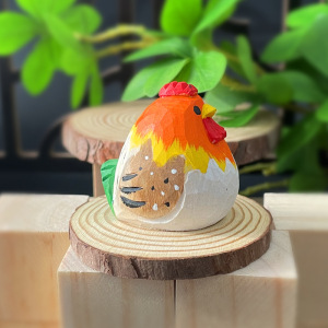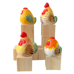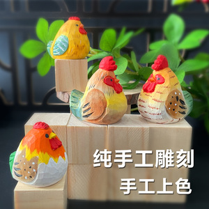 木雕小萌鸡治愈系桌面摆件纯手工实木雕刻可爱彩绘小鸡木制工艺品