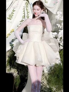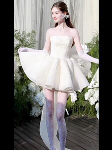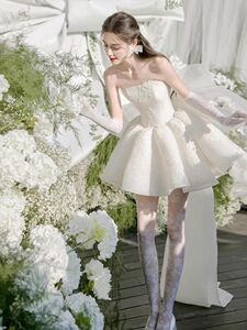 法式高级感白色抹胸晨袍新娘订婚晚礼服小个子成人礼宴会气质短裙