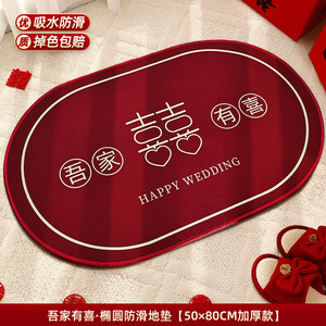 喜事连连·椭圆防滑地垫【50*80cm加厚款】