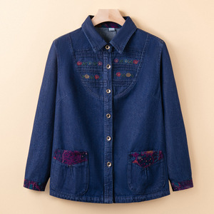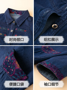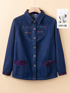 中老年女秋季牛仔衬衫早秋新款奶奶装秋装全棉外套薄款妈妈装