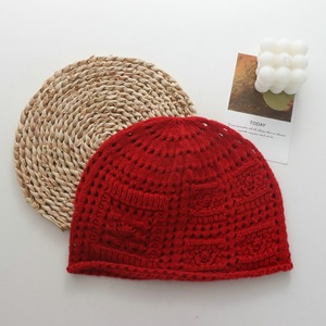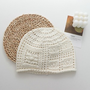 日系新款编织镂空复古针织文艺包头毛线帽女甜美可爱显脸小