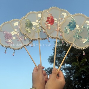 中国风玫瑰刺绣团扇舞蹈扇古典舞表演扇子汉服搭配拍照长柄团扇子