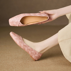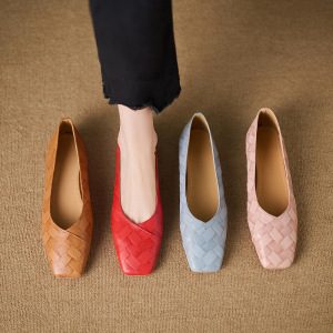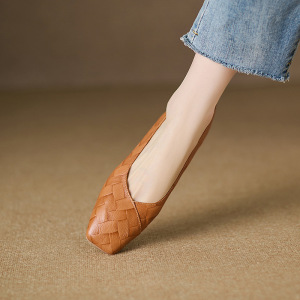 低帮鞋2025春季新款女鞋方头粗跟低跟时装鞋一脚蹬懒人鞋浅口单鞋