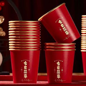 结婚纸杯一次性杯子加厚金箔婚礼婚宴喜杯水杯家用红色婚庆茶杯红