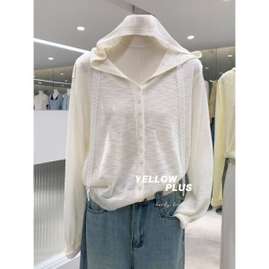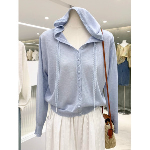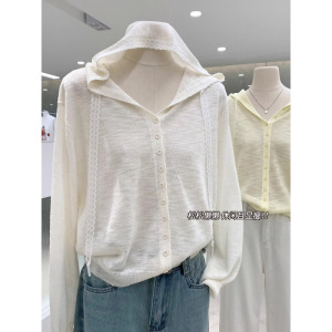 温柔浅春系蕾丝拼接连帽针织开衫薄款慵懒风防晒罩衫春季流行穿搭