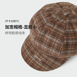 日系复古格纹新款八角帽女春秋季百搭时尚贝雷帽气质显脸小画家帽