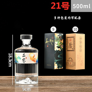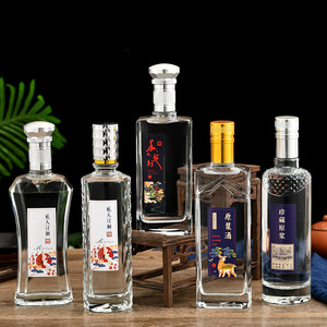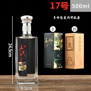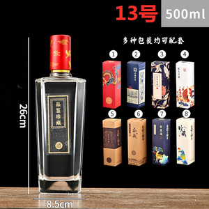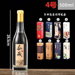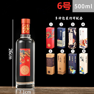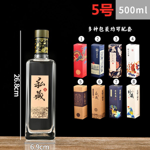 方形玻璃酒瓶透明白酒瓶一斤装500ml圆形礼盒全套酒瓶带标签
