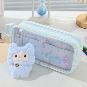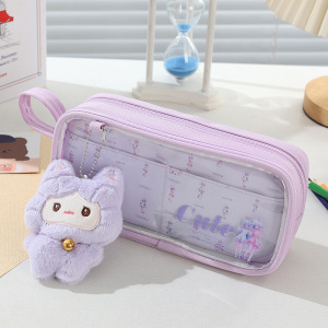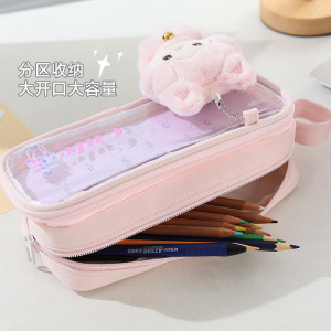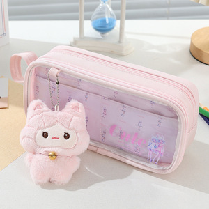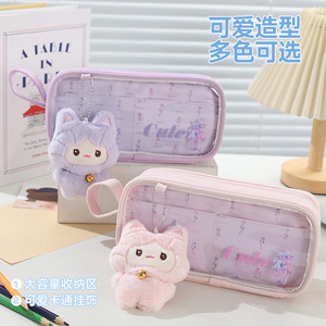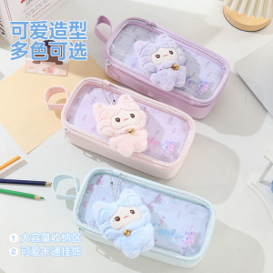 新款可爱卡通创意小学生女生笔袋收纳袋高颜值带娃娃吧唧铅笔袋