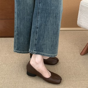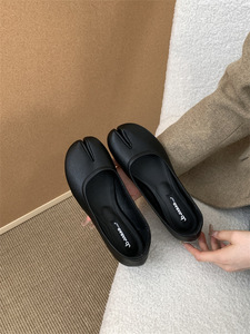 韩版复古风浅口分趾猪蹄鞋女2025新款软底一脚蹬通勤粗跟舒适单鞋
