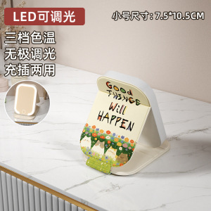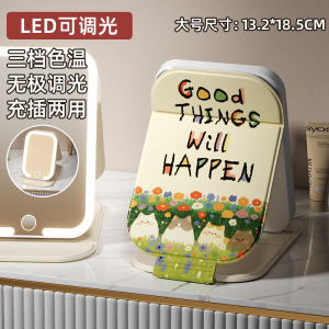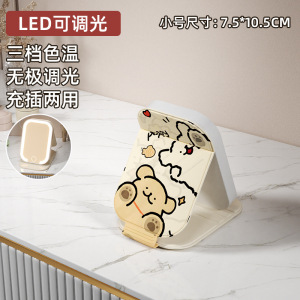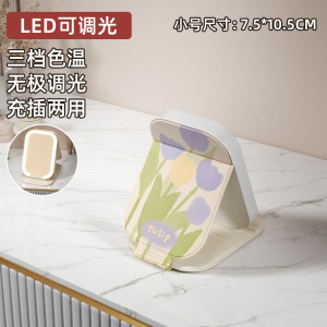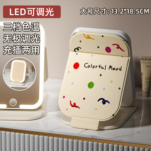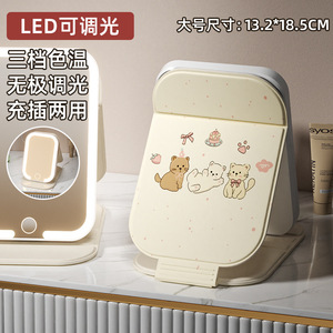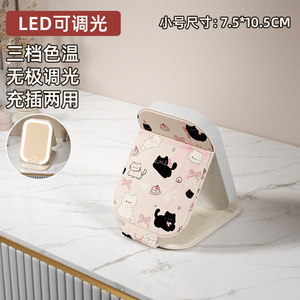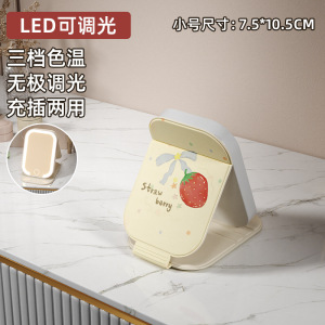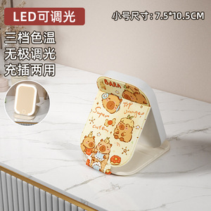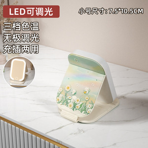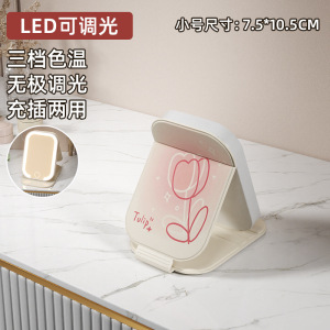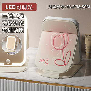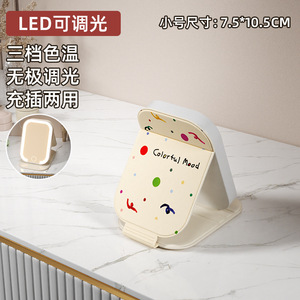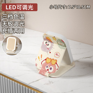 LED化妆镜卡通印花补妆镜学生宿舍带灯台式折叠镜子随身便携补光