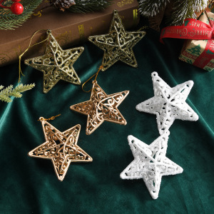 跨境新款镂空五角星圣诞树挂件圣诞气氛布置装饰用品居家创意摆件