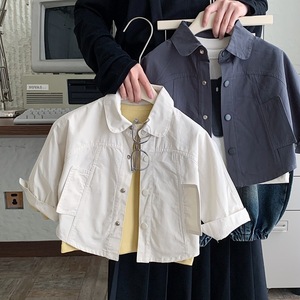 波拉bora童装男童长袖衬衫儿童秋装2025新款韩系薄款米色衬衣外套