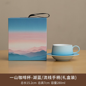 一山咖啡杯-湖蓝/流线手柄(礼盒包装)