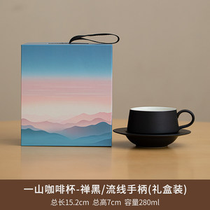 一山咖啡杯-禅黑/流线手柄(礼盒包装)