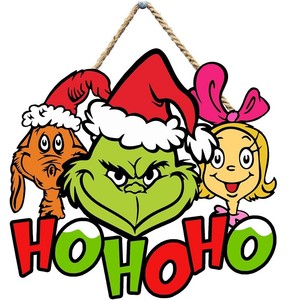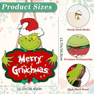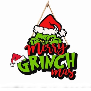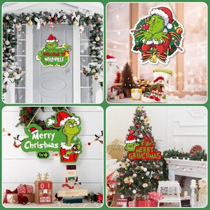 跨境新品圣诞节装饰格林奇门牌圣诞绿毛怪挂牌木质圣诞树装饰挂件