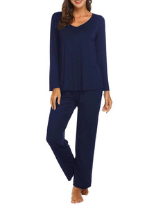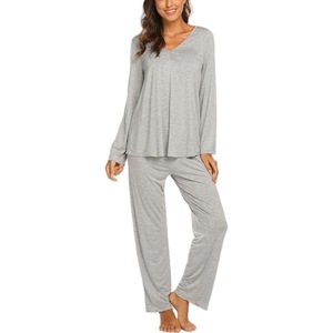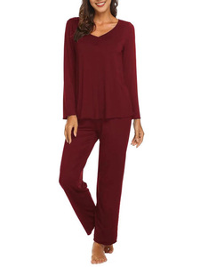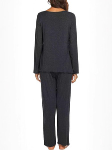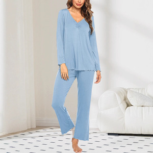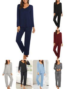 2025亚马逊欧美跨境外贸春夏新款纯色V领长袖长裤宽松家居服女士