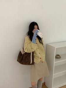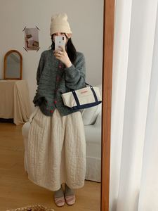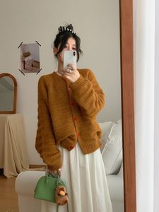 韩系慵懒风氛围感撞色纽扣针织开衫2025秋冬新款宽松百搭毛衣外套