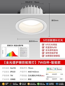 【全光谱防眩筒灯】白杯-7W-智能调光调色-75开孔