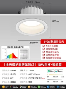 【全光谱防眩筒灯】白杯-10W-智能调光调色-75开孔