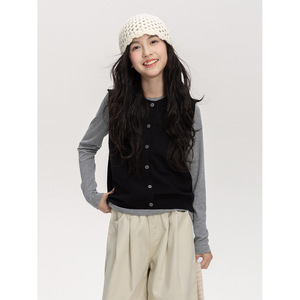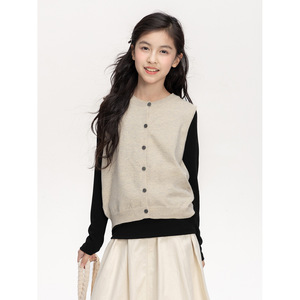 女童无袖针织开衫2025秋装新款儿童韩版圆领马甲叠穿宽松背心上衣