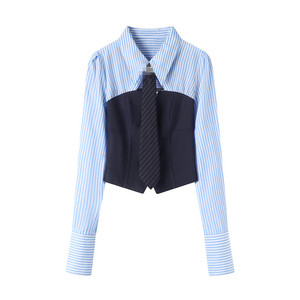 现货2025秋新款时尚甜美假两件领带翻领长袖衬衫70801031