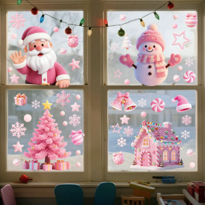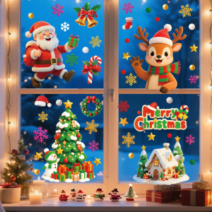 跨境新品圣诞老人雪人静电贴纸节日装饰品橱窗玻璃门贴画派对布置