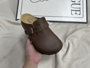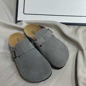 牛皮版包头勃肯鞋男女同款真皮软木底博肯凉拖鞋懒人外穿半包拖鞋