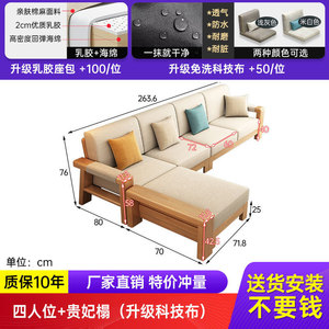 新中式实木沙发床两用家用全实木小户型组合现代简约拉床布艺沙发