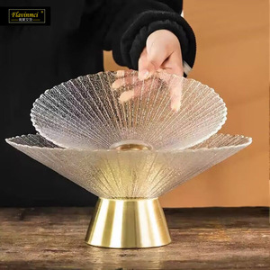 弗莱文茨北欧金色高脚水果盘轻奢创意客厅家用茶几大号零食果盘