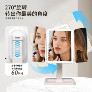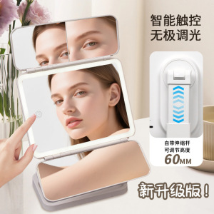 镜子化妆镜子带灯led发光桌面台式可升降宿舍家用梳妆镜跨境爆款