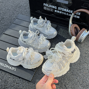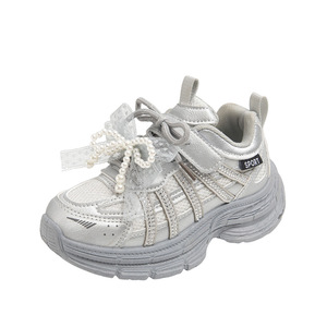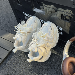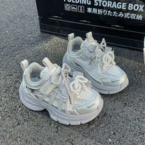 女童运动鞋舒适透气时尚老爹鞋2025秋季新款洋气珍珠蝴蝶结公主鞋
